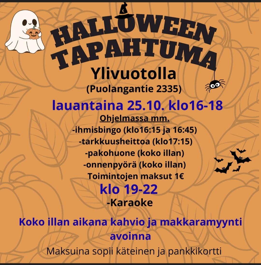 Tervetuloa juhlimaan Halloweeniä kanssamme. klo16-18 on erilaisia toimintapisteitä kaikenikäisille. klo19-22 ilta jatkuu rennosti karaoke -laulujen tahtiin.